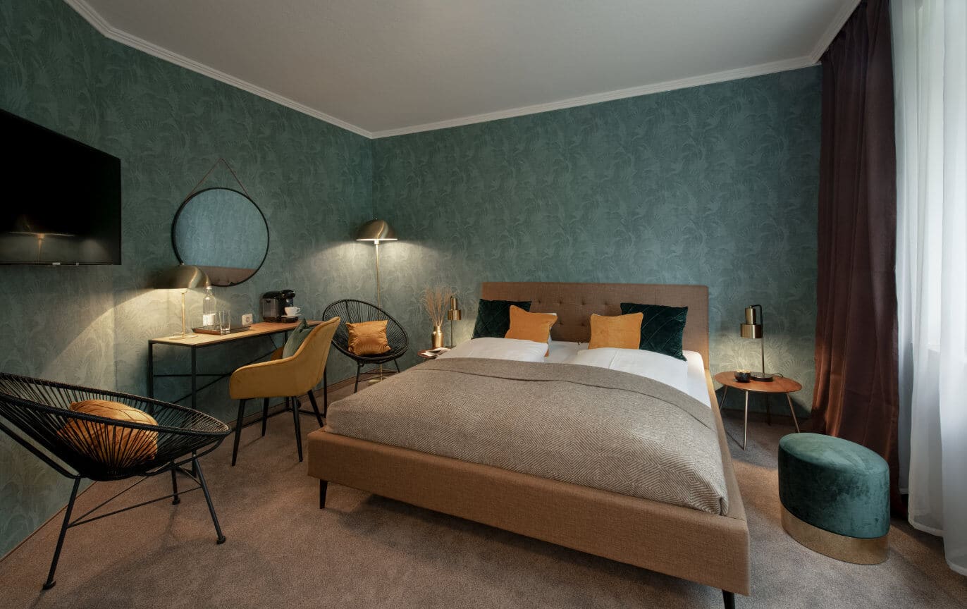 Die Komfortzimmer verfügen über ein größeres Bett und sind etwas geräumiger als die Classic-Zimmer. Alle Doppelzimmer Komfort sind Nichtraucherzimmer, verfügen über eine ruhige Lage und sind ausgestattet mit Dusche, Haartrockner, Highspeed W-LAN, Flatscreen mit Sat-TV, Schreibtisch, Radio sowie Direktwahl-Telefon. Die Komfort Zimmer wurden in 2019 teilrenoviert. Die Komfort-Zimmer verfügen zudem über eine Kapsel-Kaffeemaschine auf dem Zimmer. Als zertifiziertes "Allergiker-freundliches Hotel" bieten wir Ihnen auf Wunsch gerne Allergiker-Bettwäsche an.